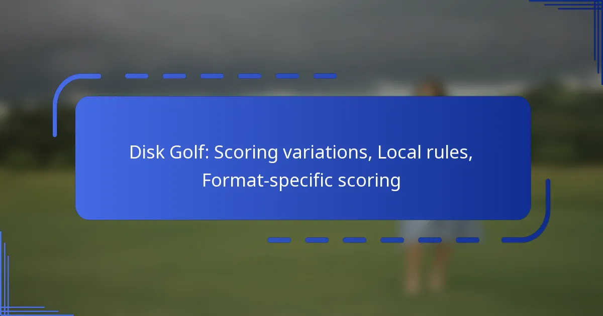Disc golf offers a variety of scoring variations that enhance gameplay and strategy. Local rules can significantly impact scoring by defining how specific situations, such as out-of-bounds areas and penalties, are handled on different courses. Additionally, format-specific scoring methods cater to the unique requirements of tournaments, leagues, and casual play, ensuring that players can accurately track their performance in diverse settings.