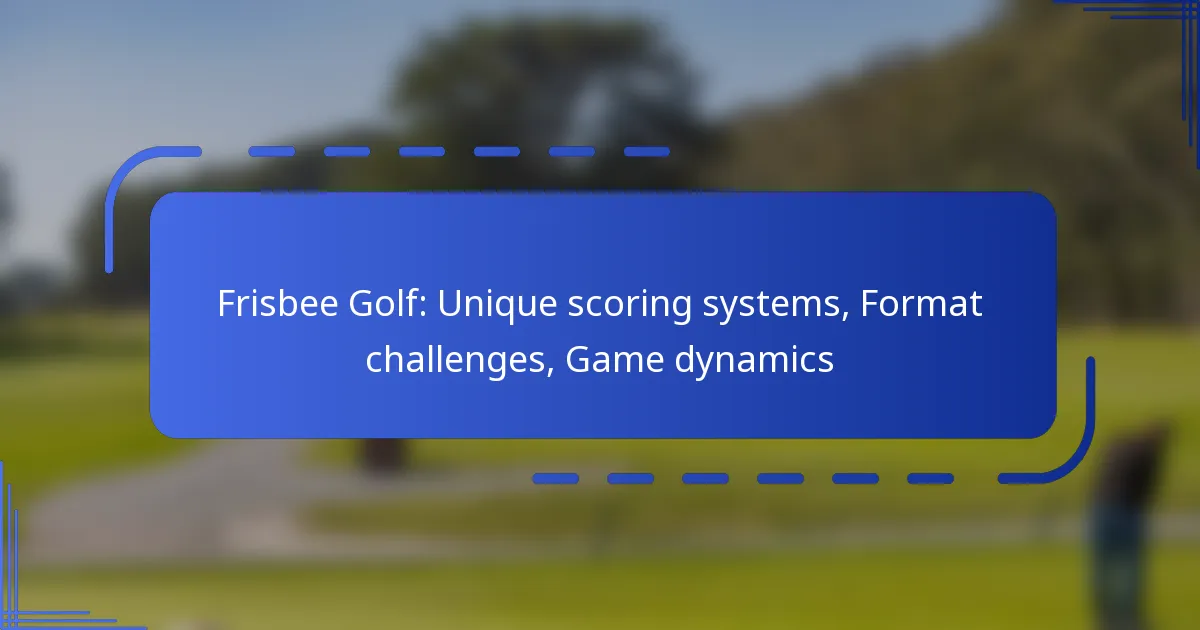 Frisbee golf is a dynamic sport that incorporates unique scoring systems, which can greatly influence gameplay and strategy. With various formats and rules that differ between casual and tournament play, players must navigate challenges that arise from course design and environmental factors. Understanding these elements is essential for enhancing both competitive play and overall enjoyment of the game.